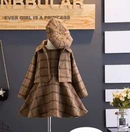 Special Offer of Autumn Winter 3PCS Toddler Baby Girl Woolen Sleeveless British Style Plaid Dress Long Sleeve Outwea