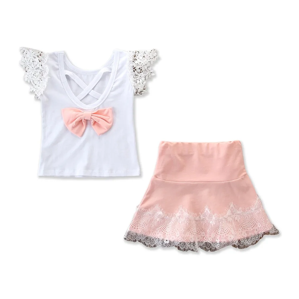 Best Price for Baby Girl Clothing Outfit Set Lace Sleeveless Tee Top+Pink Skirt Outwear For 1-5Year Children Toddl